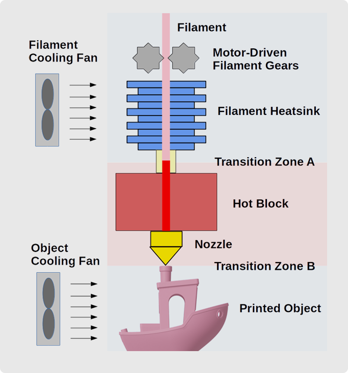 The cold and hot ends must work synergistically to extrude just the right amount of material at the required temperature and physical state for properly stacking up layers.